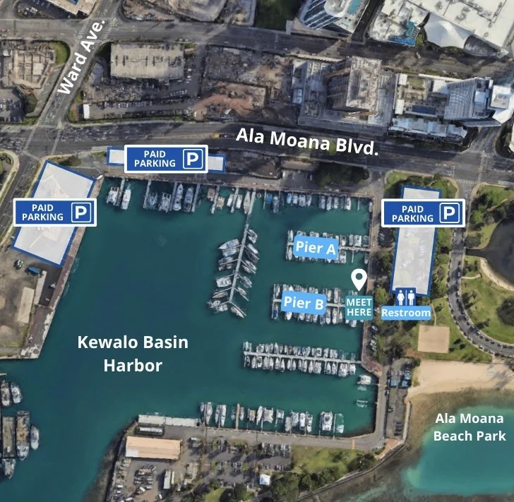 There are paid parking lots near Kewalo Harbor as seen on this map, but parking spaces are very limited.